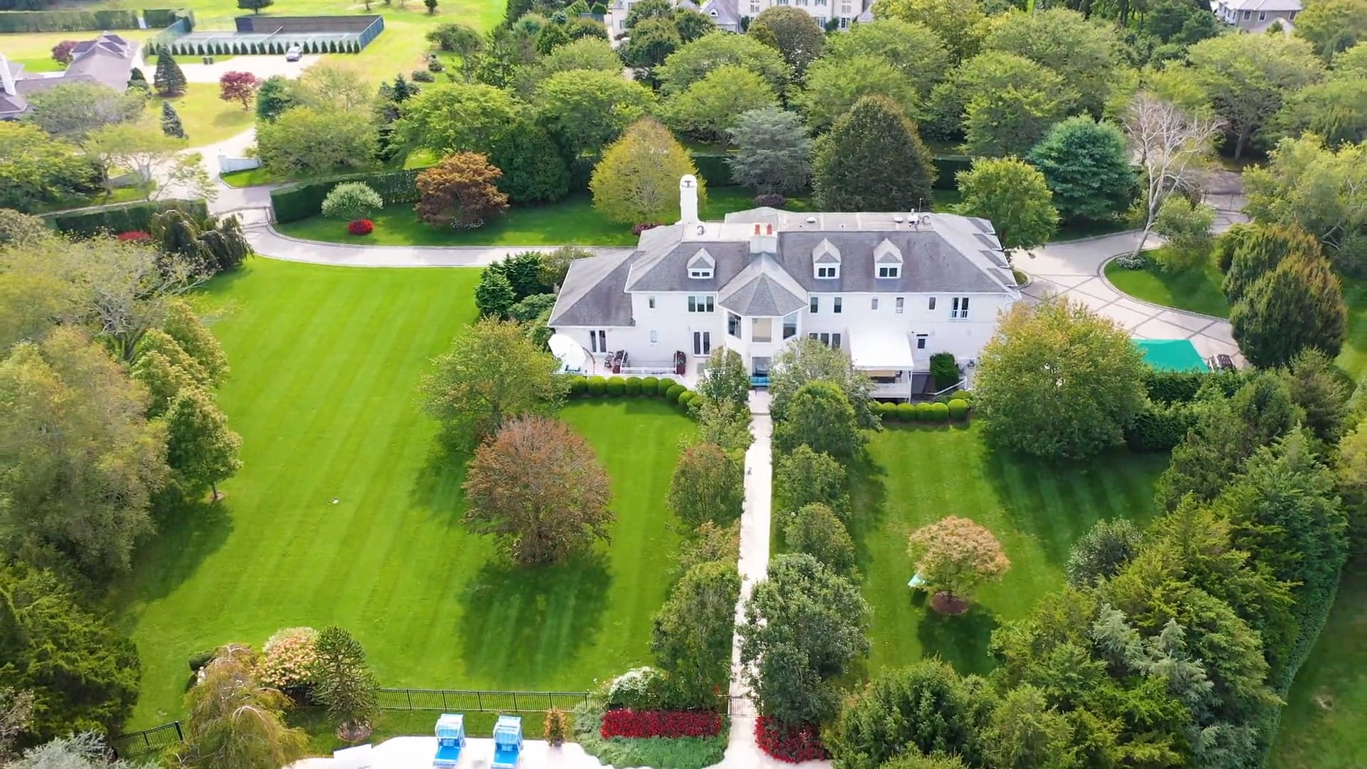 Carved from the former 250 acre, Southampton oceanfront estate of Henry Ford II, an impressive 12,000+ SF residence commands 2.5 +/- verdant acres in the exclusive enclave known as Fordune, now listed for well below what it could be recreated for today. With deeded beach access, a 10-bedroom, 13-bath villa welcomes all through a gated entry along an intricate stone-topped driveway that provides ample parking for guests on those busy weekends and during evening soirees. A dramatic front door opens to reveal the creative artistry of Sanchez & Coleman whose confident mix of geometric shapes, clean lines, exuberant colors and warm undertones has informed this sprawling Hampton retreat. The journey begins as a formal living room with a fireplace and dining room flank the tiled entrance. A more informal double-height living room awaits on the rear of the home. Sundrenched by day, complements of floor to ceiling windows looking out to the grounds, at night, the room transforms into an intimate space warmed by its own fireplace. Entertaining will be effortless complements of the newly redesigned, Euro-inspired, eat-in kitchen by Bilotta of New York highlighted by ultra-modern cabinetry, a hidden refrigerator, marble-clad counters, and an oversized center island, all enhanced by both food and butler pantries. Begin and end your days in the seclusion of your convenient first floor master wing where the expansive sleeping chamber is joined by a newly renovated spa-like bath, three walk-in closets and access to the terrace, where you will enjoy your morning coffee or post prandial cigar. A well-placed den, powder room and a full bath off the four-car garage complete the first floor. Upstairs an array of seven additional bedrooms each with dedicated baths ensuite allows for the overflow of weekend company or perhaps, as in the case of the current owner, room for his and her offices while working at home during the new reality. An elevator descends to the expansive finished lower level which finds a world-class game room, tiered 16 seat screening room, gym, full bath and a staff suite. But since what happens outside in the Hamptons is equally as important as what is going on inside, nothing was left to chance on the manicured 2.5-acre property, masterfully curated by Mahoney & Associates. Cool underfoot, imported Turkish tiles were chosen to create the broad patios framing the rear of the house which continue over a sea of lawn to embrace the 20 x 55 heated Gunite pool, spa and pool house. A kaleidoscope of color is found within the specimen trees, flowering gardens and perimeter plantings ensuring privacy from the neighboring properties while allowing ample room for that coveted tennis court. A whole house generator, audio system inside & out, security system with CCTV, public water and multiple awnings add to the property’s elan. When the spirit moves you take your golf cart to the private ocean beach or bike to the nearby shops and restaurants of Southampton Village. With proximity to everything that makes Fordune a world-class destination, this unique estate, repositioned at a price well below its competitors, awaits your private tour today.